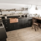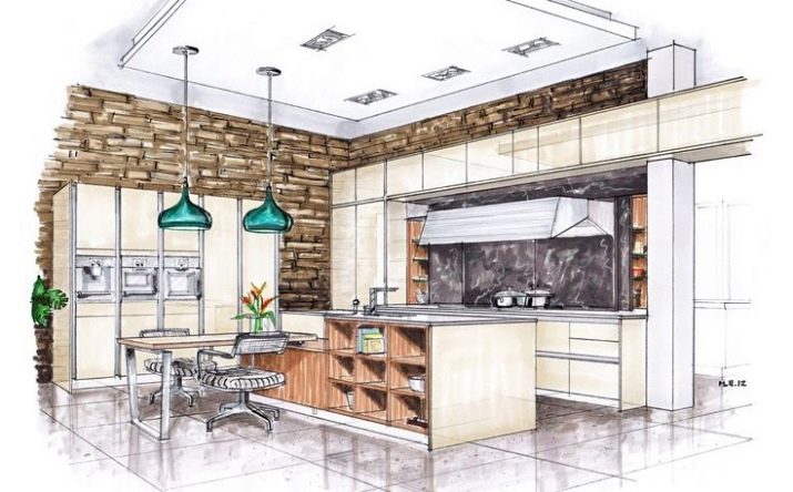 Before starting repairs and decorating your kitchen in the described direction, it is worth familiarizing yourself with the variety of materials and determining how much they will fit together on your square. An important step is the preparation of drawings and projects, with mandatory measurements and determination of where this or that element of equipment and furniture will be located.