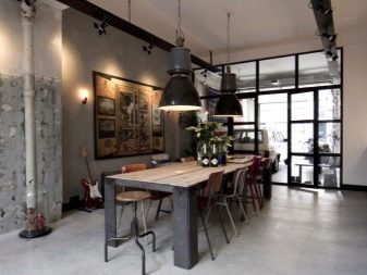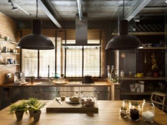 - Forget about the sophisticated, elegant fixtures that are so popular in today's range. The best solution is pendant lamps, stylized as industrial ones.