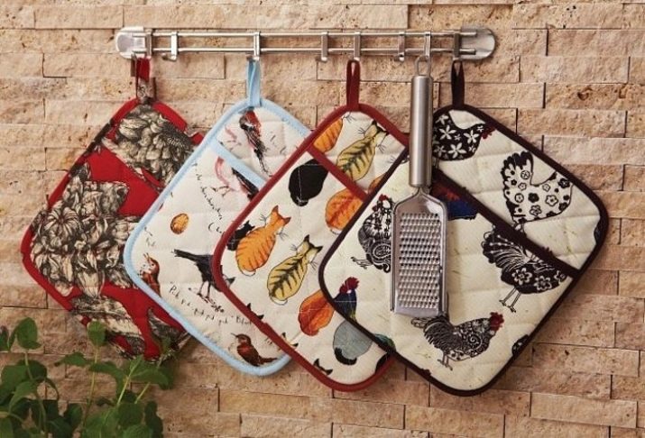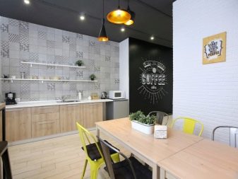 Textiles can be selected to match the curtains, as well as a different color. A loft-style tablecloth is rarely used, but a few towels or potholders will not be superfluous. They can be bright accents, it is recommended to choose the following colors: