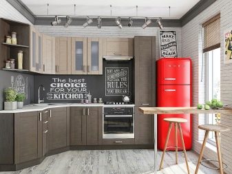 - the requirement of a large space, and although some owners design small kitchens in this direction, this is not appropriate in every layout;