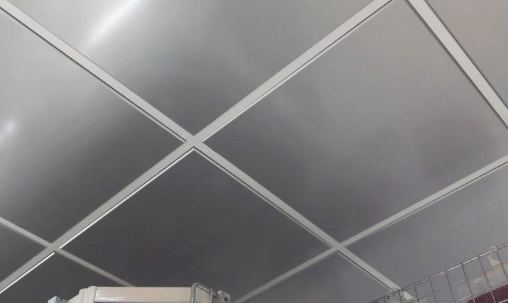 Also can decorate the ceiling with cassette tiles made "under the metal". This is a lot of squares that fit together. Extremely easy to install, have an unusual, interesting look. For large kitchens, plasterboard two-tier structures are also suitable. They are painted in light gray colors.