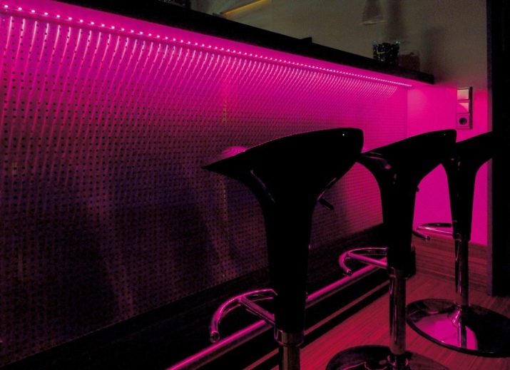 - An original and stylish solution will be LED-backlight. A thin line of various colors will beautifully highlight glass details in the interior, it is appropriate to use it to emphasize graffiti or a bar counter.