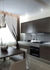 - arrangement of the kitchen space, taking into account the unusual architecture of the room;