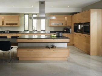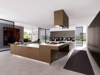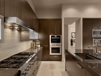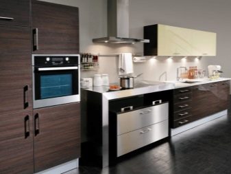 A metal hood can be an extractor hood, accessories, a set of mechanisms for opening and closing drawers. Well, if the headset is equipped with a modern type of bottle-holder. Depending on the layout of the headset can be linear, angular and p-shaped. Models can have an island and a peninsula, the more technologically advanced they are, the better.