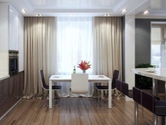 - a light-colored project, combining a kitchen with a loggia;