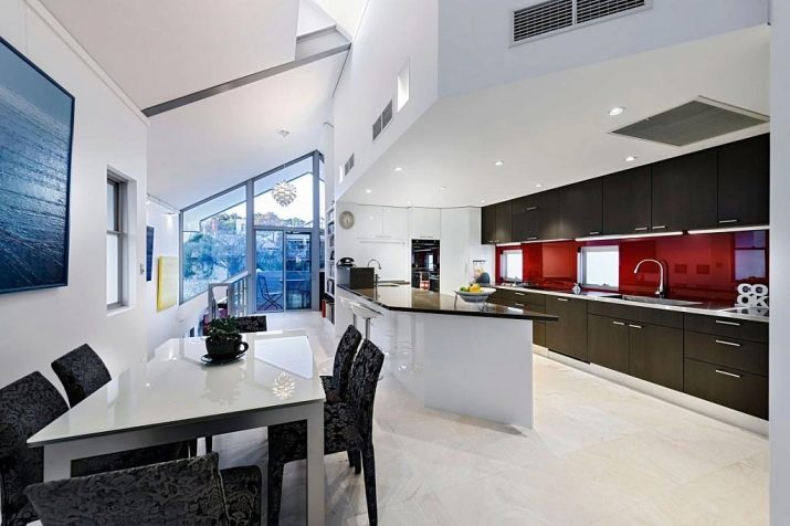 In addition, each item used for the interior is weighted for functionality. There is no place for superfluous things in a modernist style kitchen. In popularity, the style can be compared with the classics that were previously tried to be embodied in the best houses of respectable people. Today, the desire for palace solemnity is embodied more often in the interiors of country houses with a sufficient footage.