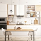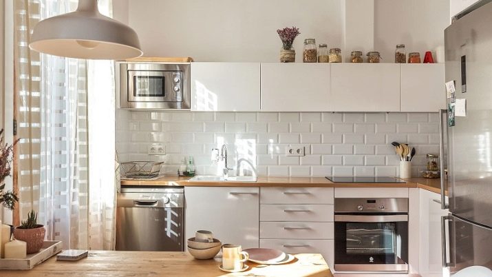 It is very important that you are comfortable in the kitchen - this is what should be the starting point for choosing a headset.If you often cook complex dishes, you need a large and comfortable worktop, if you have a large family, you need a big sink, and if you want to arrange the sets nicely, you should choose headsets with open shelves. If the kitchen is very small, it makes sense to make cabinets up to the ceiling and buy a small stylish ladder. The design should depend on your needs.