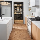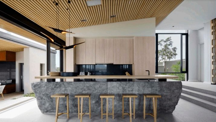 In addition, unusual island headsets are popular - you can bring a sink, cabinets, bar counter or household appliances to the island.