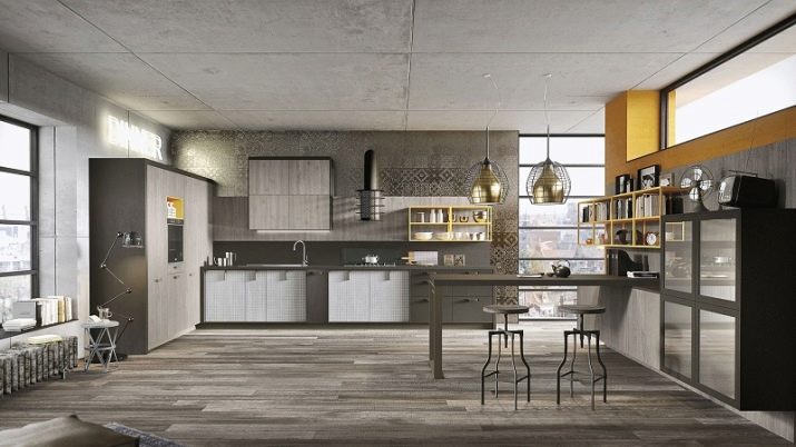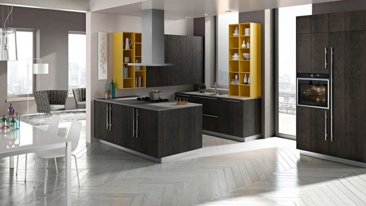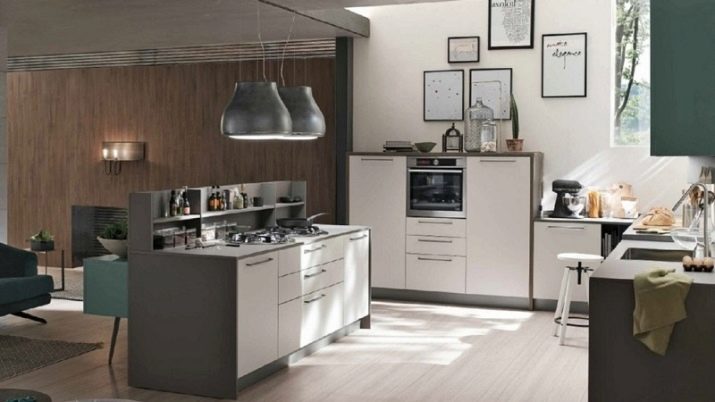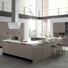 Wherein Do not forget about aesthetics - it is especially difficult to choose headsets for a small kitchen: so that the space is visually perceived wider, you need to make it as integral as possible. Best of all, if the headset will consist of closed cabinets with built-in appliances and without handles. Glossy materials also look good - they reflect light and make the room visually spacious. As for large kitchens, you can choose multi-colored facades for a headset and open shelves, but do not overdo it: for the modern style, rather restrained design options are characteristic.