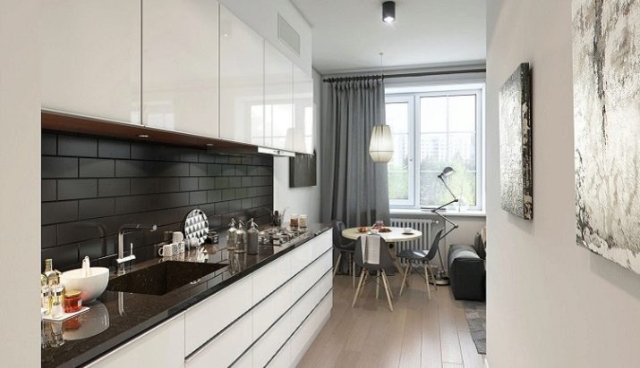 In some apartments, the kitchens have a non-standard narrow shape (for example, 2 by 4 m). An elongated but spacious room is easier to make more harmonious. To do this, you can use zoning techniques, interesting style decisions. But a small and narrow space can cause discomfort, close to claustrophobia. In some cases, difficulties arise with the placement of all necessary elements. In such situations, it is worth using all means - both visual effects to harmonize the shape of the room, and practical solutions to save space.