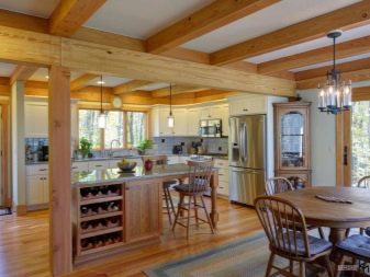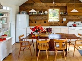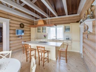 What should be the kitchen in a wooden house and what is needed for its decoration, whether it would be appropriate to use a white kitchen in a log room or whether it is better to use materials with a natural texture, in what style to decorate the combined space of the kitchen-dining room - you should think about all this beforehand to prevent Annoying mistakes in the repair process.