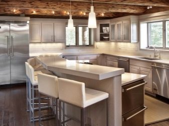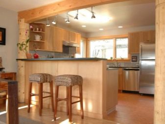 - Installation of a bar counter. Such a universal element can be used to expand the work surface, and to replace the dining table or organize a storage system.