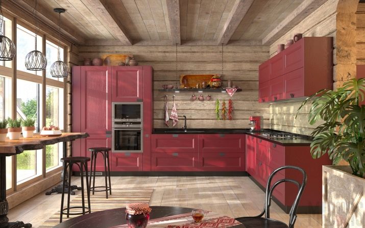 The style of interior design of a kitchen in a wooden house can also be quite diverse. Among the most popular solutions, several options stand out.