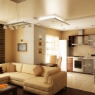 But you can use large traditional chandeliers. In this case, it is better to place a large chandelier in the living area, and a small one in the kitchen. Additional lighting can be provided using spots or rasters.