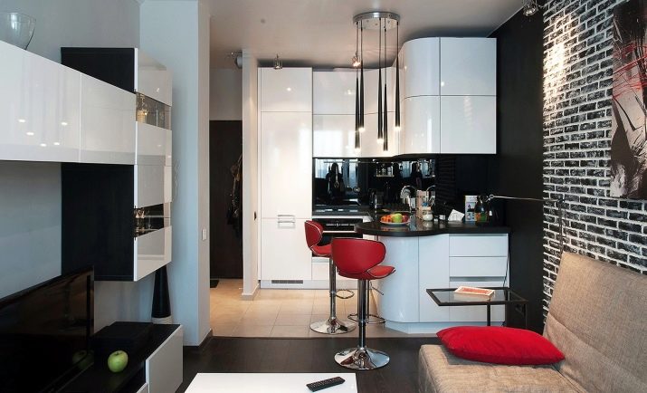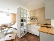 The kitchen in the mini-studio is important to properly separate from the rest of the room. So it will look more harmonious. There are several basic zoning methods.
