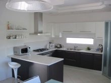 - Corner or U-shaped kitchen. This method will increase the useful space in the kitchen, you will have additional space for storage and an additional surface for cooking.
