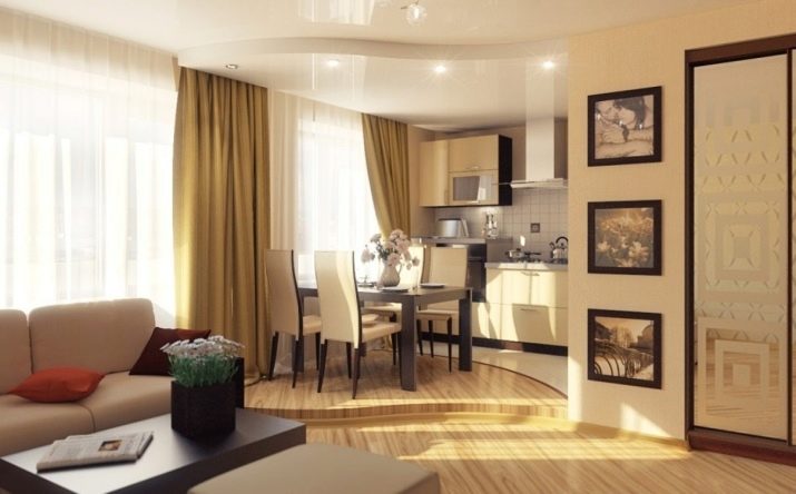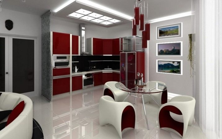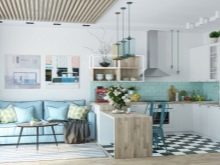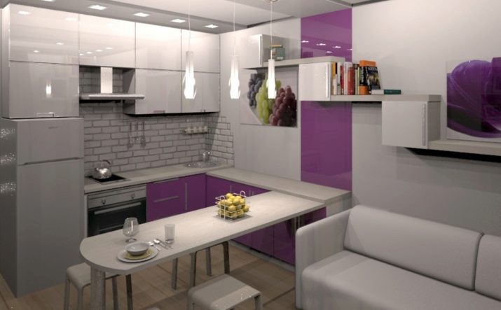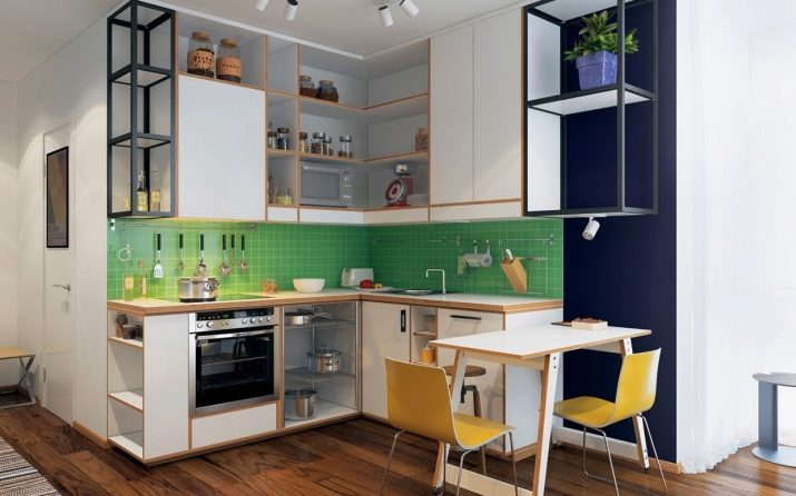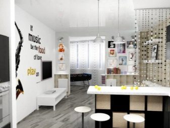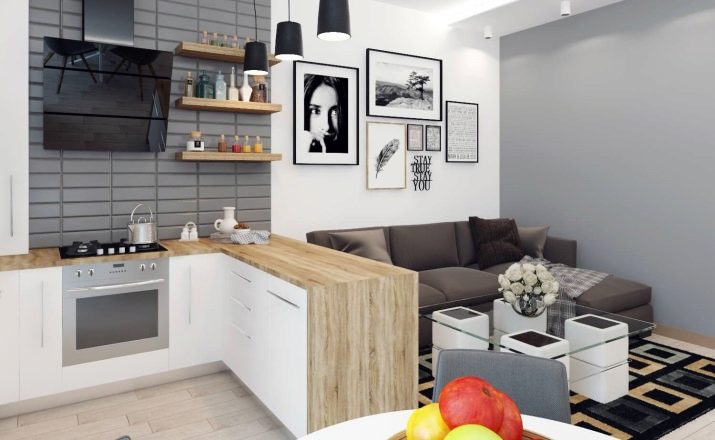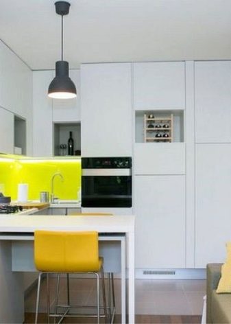 In addition to these methods, you can use other methods. but experts advise you to use them only for spacious studios, otherwise you will visually reduce the kitchen space. These include: