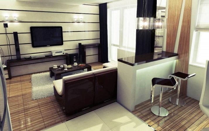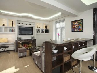 - Bar counter. This is a great option for sharing a studio. This design can be used instead of a dining table. And to make it more functional, you can install additional compartments.