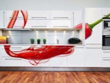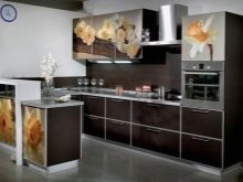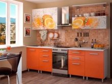 - Kitchens with vibrant prints and images. To create a truly unique and original interior, you can resort to buying a headset that combines both plain and photo-decorated facades. For example, it can be a positive orange furniture set, in which the upper drawers are complemented with images of oranges.