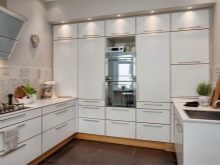 However, it must be borne in mind that such chic and beautiful kitchens are not suitable for all quadratures. U-shaped headset, it makes sense to buy only for a large, spacious room. Sometimes such furniture is put in the kitchen combined with the living room. A studio apartment is also suitable, where there are no adjacent walls.