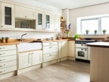 White, beige, cream or chic ivory facades able to visually expand the available space, refresh it, make it airy. Today in furniture stores you can find a lot of light sets made in a variety of styles. It can be both strict classic, and catchy, artsy options.