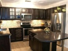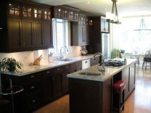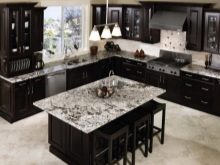 - Dark kitchens with stone surfaces. Few people decide to purchase a black or dark brown set, but with proper interior design, it can become a real decoration of the kitchen.