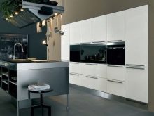 It is important to arrange the island related to the kitchen set in the room so that it does not block access to other pieces of furniture, does not block the passage, and does not break out of the general ensemble. Kitchens with such an addition are among the most functional, ergonomic, but they are not suitable for a small room.