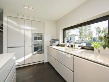 Despite the fact that direct kitchens look beautiful and are presented in a wide assortment, many people still prefer modern corner options. Such kitchens are represented by L-shaped and U-shaped models.