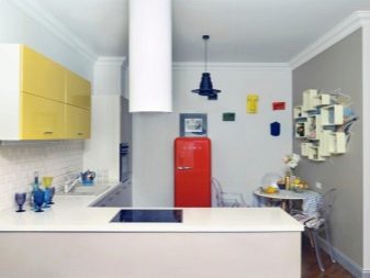 - A kitchen inspired by contemporary art. Headsets in this vein are distinguished by non-standard color combinations. On the facades there may be bright and bold scales that seem incompatible at first glance. Similar furniture sets look harmoniously against a neutral background.