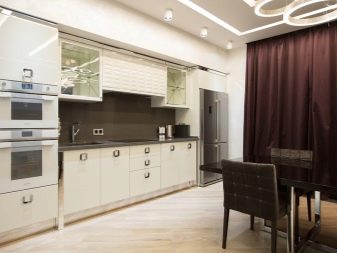 Often, such kitchens include finding built-in appliances in them, which saves even more free space in the room.