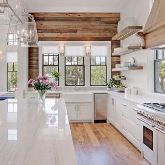 It is important to select countertops from high quality materials. If you want to organize a really stylish and chic kitchen, you should give preference to work surfaces made of wood, stone (both natural and artificial). Such elements can make the headset really solid and expensive.