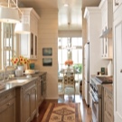 In this case, most furniture is used, so sets of this type are the most expensive. All cabinets are installed along three walls. The table here, as a rule, is in the middle of the room.