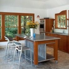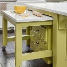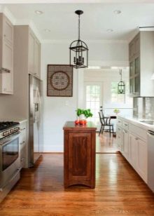 This option uses floor tables, cutting tables, as well as other elements of kitchen furniture, which are complemented by wheels for free movement. This not only saves space, but also allows you to periodically change something in your kitchen.