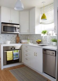 Separately, it should be said about the technique. This category should include items such as a dishwasher, freezer or refrigerator, microwave or multicooker. If the kitchen is small, then it is better to choose the built-in appliances, as it takes up less space.