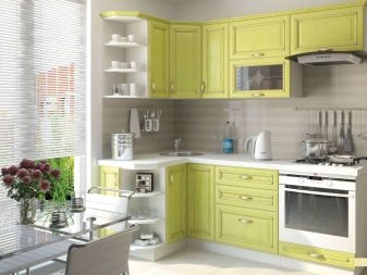When choosing, it is worth paying attention to narrower designs. This will immediately visually increase the space in such a small room. Corner kitchen units will be an excellent option for small rooms.