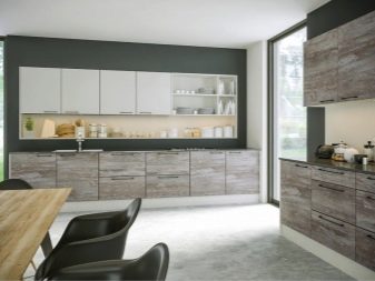 To install furniture in this way, you first need to choose the wall along which it will be placed. Most often this option is applied in long but not too narrow rooms. Otherwise, the kitchen will not have enough space for free movement.
