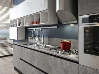 The basis of such a room is kitchen cabinets. It is in them that all the dishes and kitchenware are stored. You can purchase both a ready-made set and cabinets separately. There are mounted and floor models. The choice depends on what kind of kitchen you need to equip. So, if the room occupies no more than 5-6 square meters, the corner kitchen, which includes a pair of wall cabinets and several cabinets, is perfect for it.