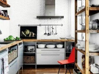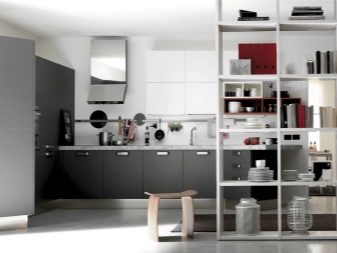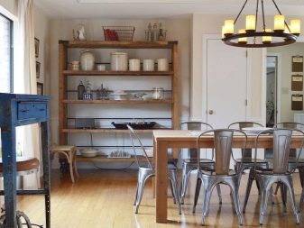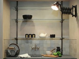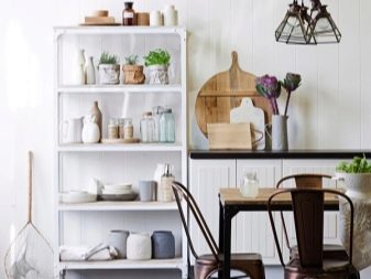 Thanks to the open design of the whatnot does not clutter up the room, and some models, such as glass, even visually increase the area of the kitchen. The shelves do not interfere with the penetration of light into the room and allow you to visually zone the kitchen.