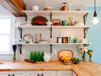 Shelves are recommended in interiors where in a limited space functionality should be provided. However, even in spacious kitchens, this piece of furniture will take its rightful place, becoming the final touch of the interior.