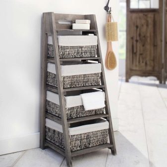 Some shelving models differ fixed position of shelves and baskets. But most modern designs suggest the variability of their location: the hostess herself chooses how many and at what distance the shelves of the whatnot will be.
