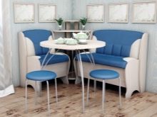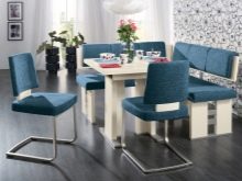 - Corner with a berth or without it. They have an angular configuration. Designed for placement in the right or left kitchen corner. Save space as much as possible. Options with a berth are equipped with a transformation mechanism. If necessary, they can be decomposed and get a full single bed for a night's rest.