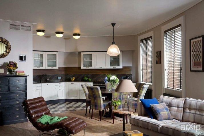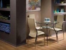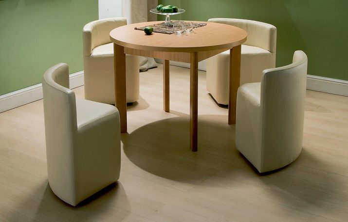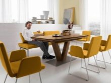 If the kitchen has a dining round table, you can place around it from 2 to 6 chairs. In this case, the dining area will be in the middle of the room. Armchairs-beds and other transforming models should be installed so that they are conveniently put forward, and the table did not become this obstacle.