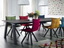 The color scheme of products has no borders - there are both monophonic options (from pastel shades to bright flashy ones) and models with prints, patterns and various compositions. When choosing a color palette, it is necessary to take into account the tones of existing furniture items. You can choose chairs that are suitable in color to the rest of the furniture, or focus on them, visually making them a “bright spot” in the interior.