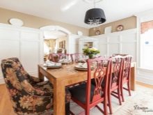 If products with fabric upholstery are selected, then light colors are not a very good solution (except for options made of genuine or artificial leather). No matter how neat the hostess is, the surface of the chairs in the kitchen is often dirty. On light upholstery even small impurities will immediately catch your eye.