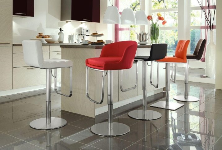 - Bar swivel chairs. As a rule, these models are equipped with one leg with the possibility of height adjustment. This is ideal for kitchens with a breakfast bar. By adjusting the height on such chairs it will be comfortable for both children and adults.