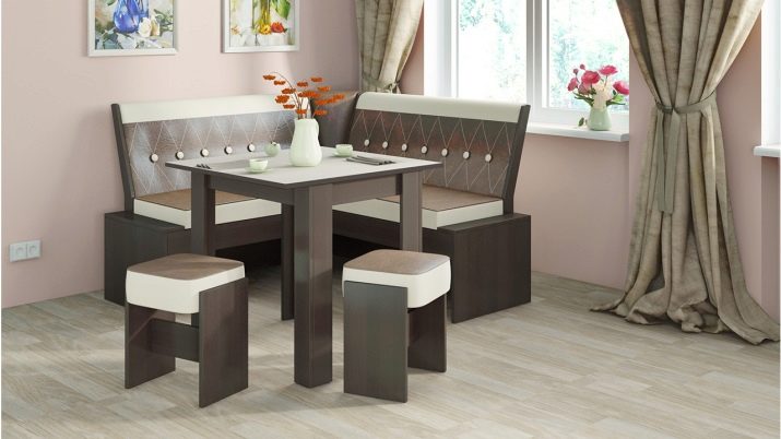 Caring for such furniture is more complicated than for ordinary kitchen stools or chairs., since a soft coating requires gentle cleaning and operation. However, the advantages of buying a kitchen corner are much more than the minuses.