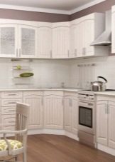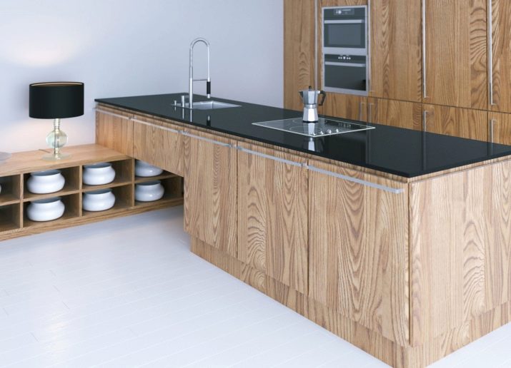 Bleached oak is considered a fairly popular material in the manufacture of kitchen furniture. This is due not only to the universal light shade, but also to the fact that oak is not inferior to many other materials in terms of strength and wear resistance. A kitchen made of such material is likely to last for many years without any complaints.