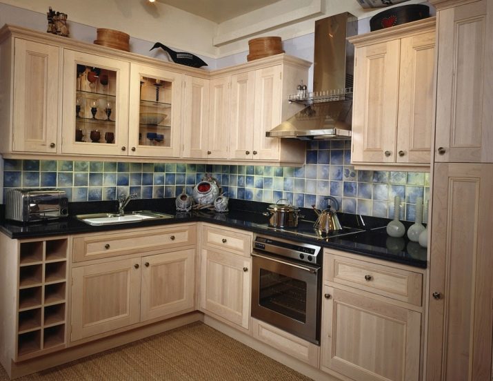 Usually for headsets in the style of provence experts recommend using warm shades of bleached oak. The facades with carvings and even drawings look especially advantageous in them.