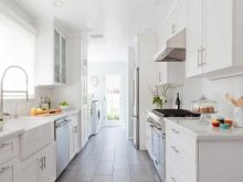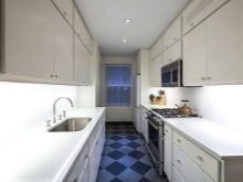 - For rooms that are elongated, it is best to pay attention to two-line kitchen sets. Such options involve placing along two walls simultaneously.