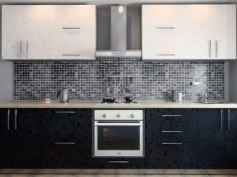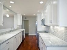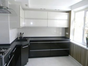 Designers recommend paying attention to a modern black and white headset with the right lighting. In such light headsets, one can often find a stone countertop with decorative chips or sparkles.